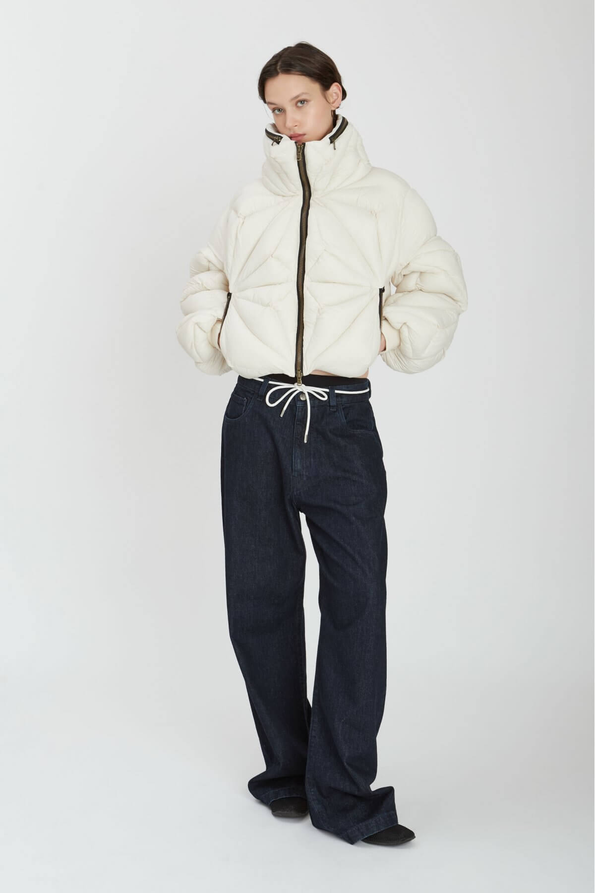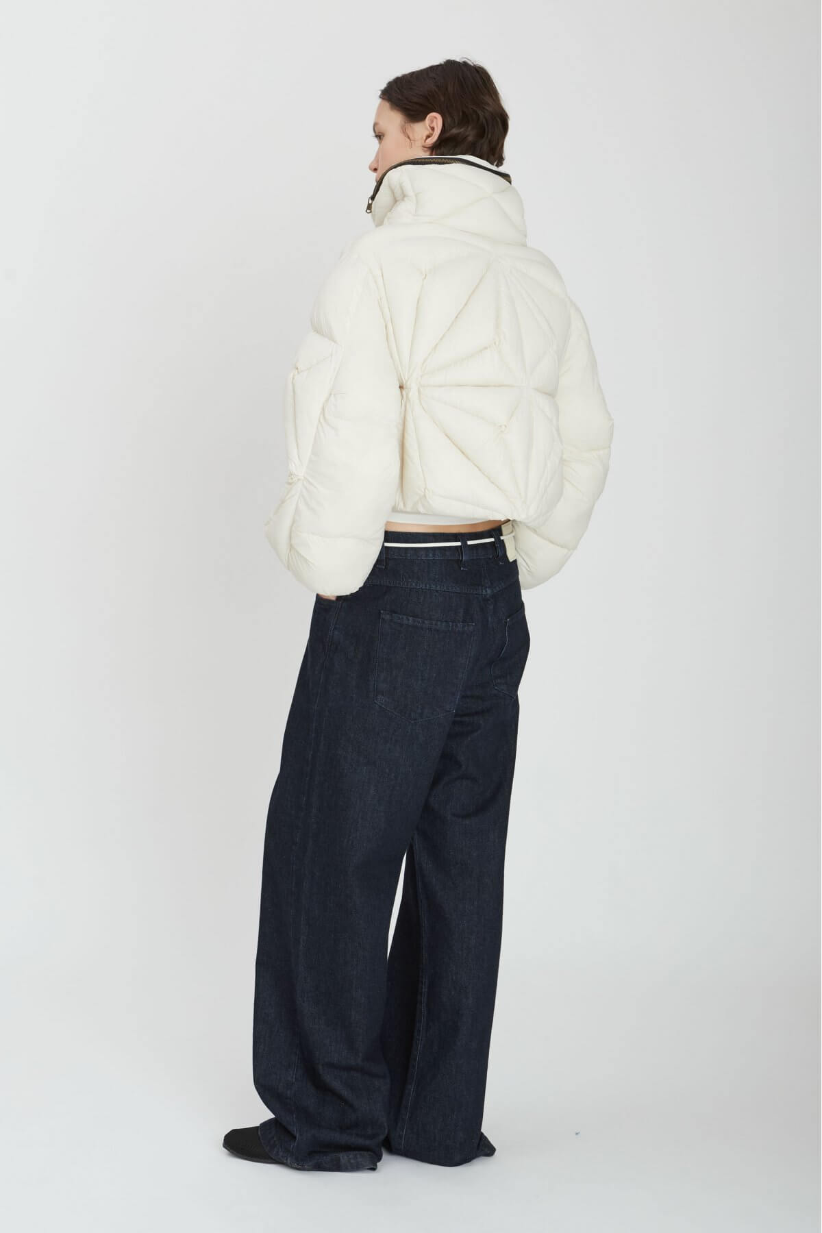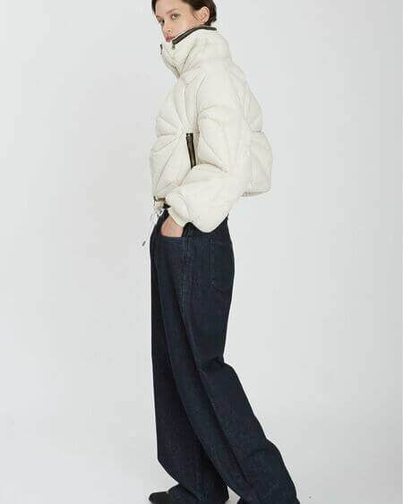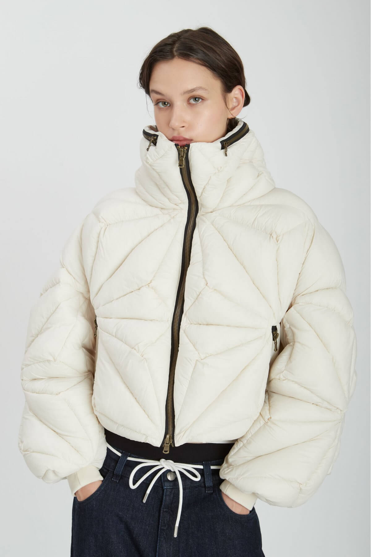 Diamond reinventa la clásica chaqueta de plumas con un acolchado geométrico y un tejido de nailon satinado que crea un efecto luminoso. Suave al tacto, cálida y ligera gracias al relleno de poliéster. Una prenda llamativa, perfecta para afrontar la temporada de frío con personalidad.