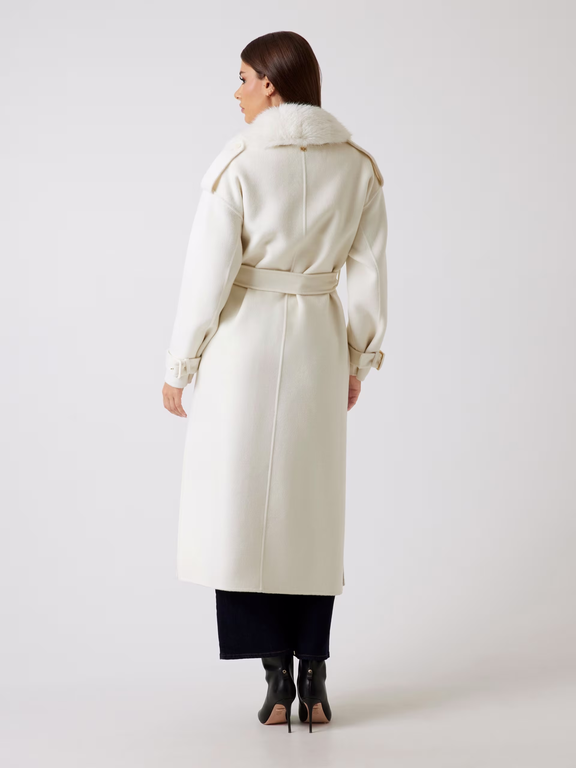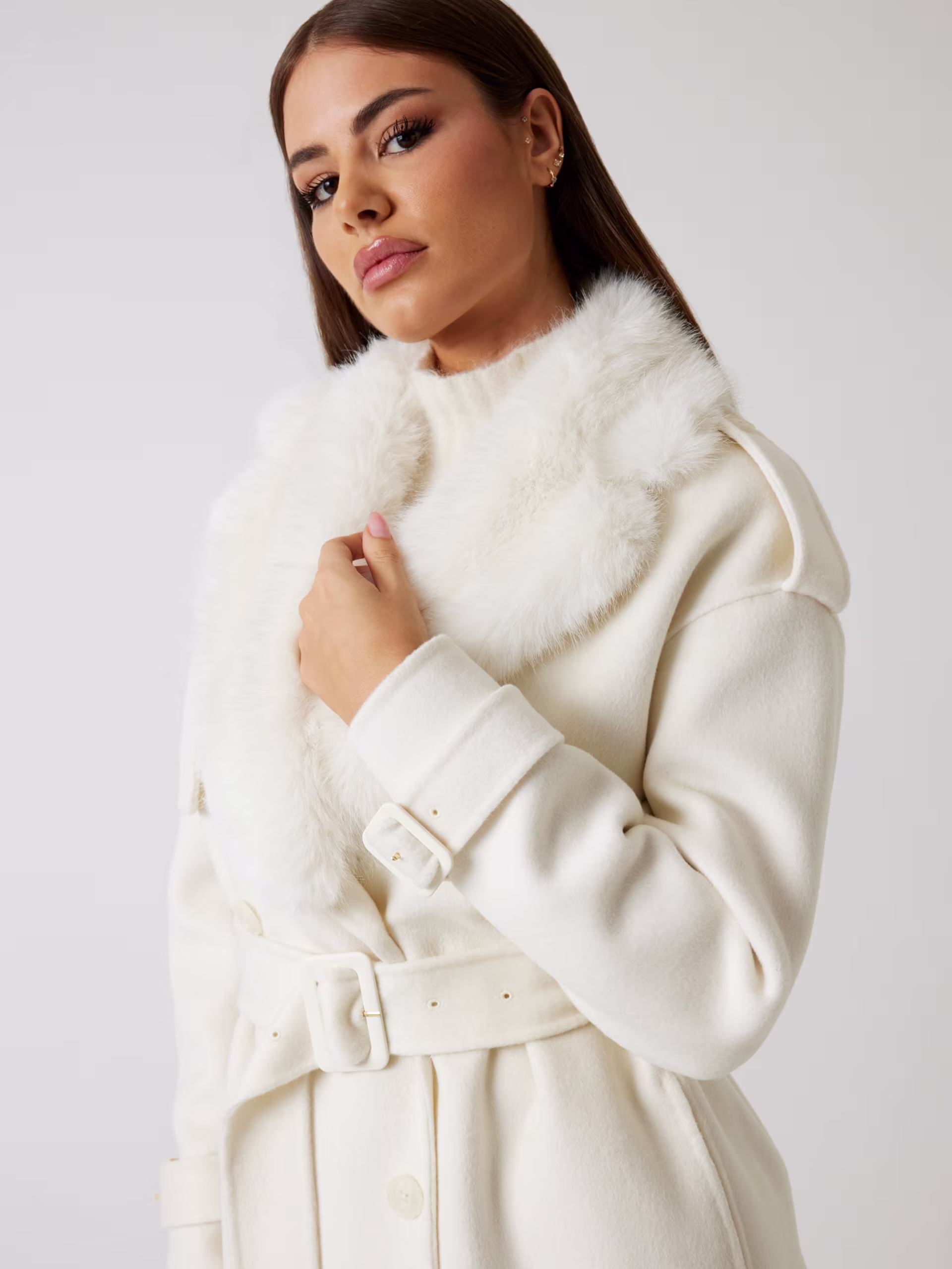 - Cierre cruzado con botones y cinturón a juego.