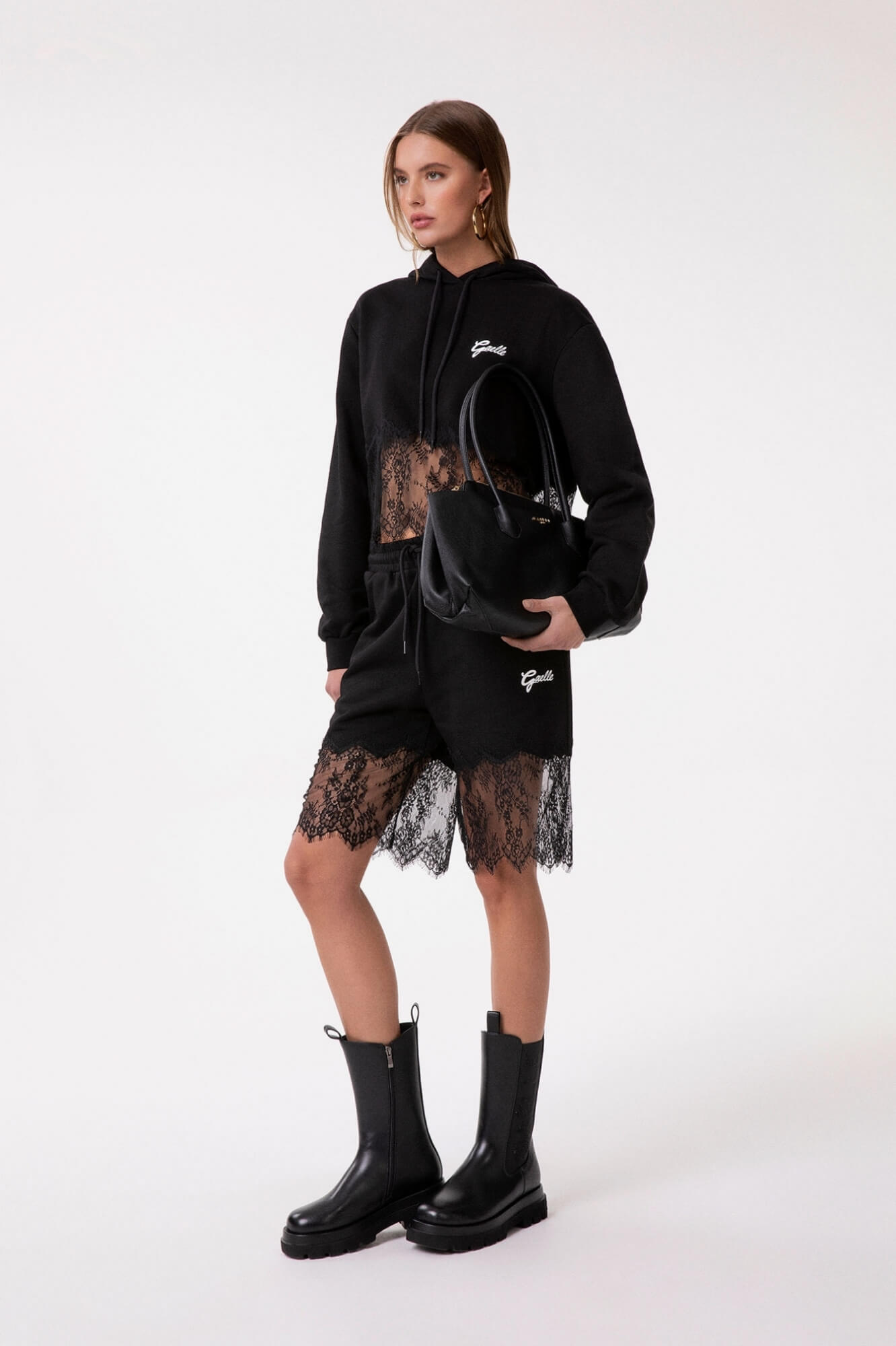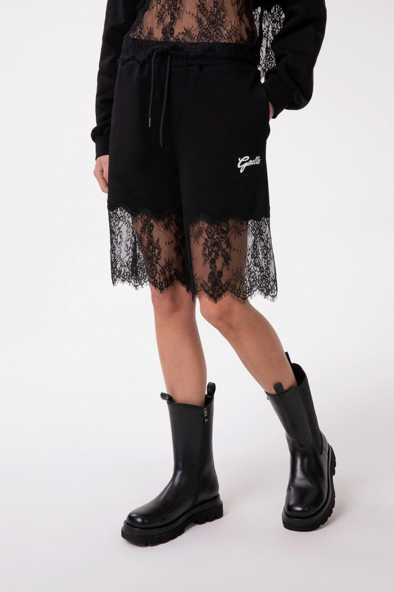 Etiquetas bermudas, encaje, felpa, gaële, negro