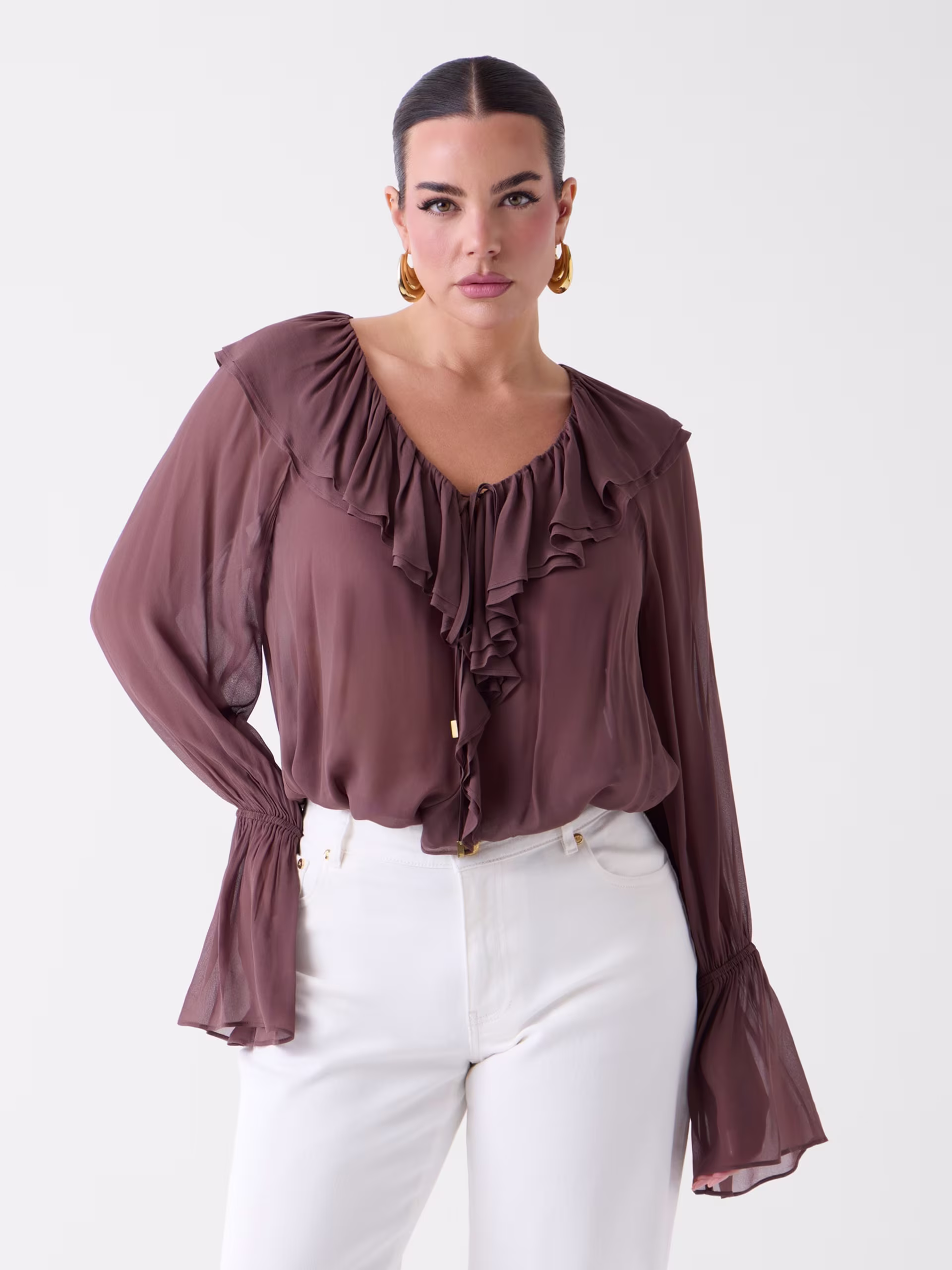 - Mangas largas acampanadas.