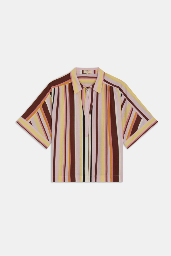 -Blusa de manga corta a rayas -Cuello de camisa