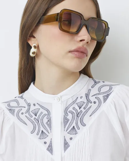 Etiquetas blanco, blusa, livio, Suncoo, W7