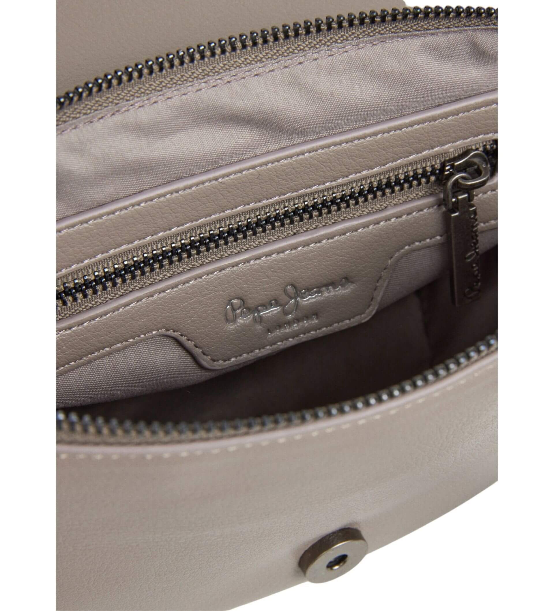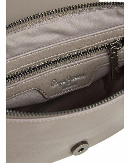 El bolso efecto piel con solapa de PEPE JEANS combina estilo y funcionalidad gracias a su diseño con cierre magnético, compartimento principal con cremallera, bolsillo interior para mayor organización y forro interior que protege tus pertenencias. Incluye asa corta desmontable y correa de hombro ajustable y extraíble para llevarlo como prefieras. Fabricado en 100% poliuretano con logo PEPE JEANS en relieve sobre la solapa, es el accesorio perfecto para completar tus looks con un toque moderno y versátil.
