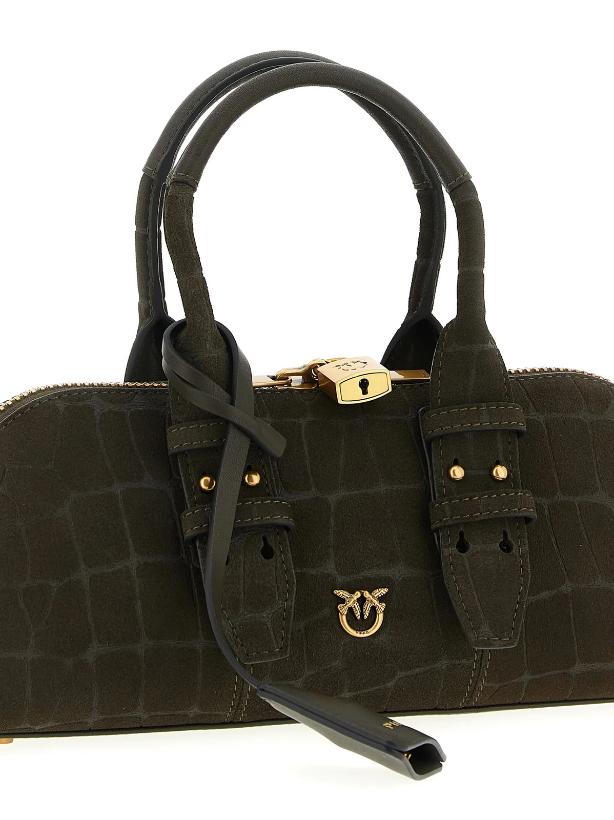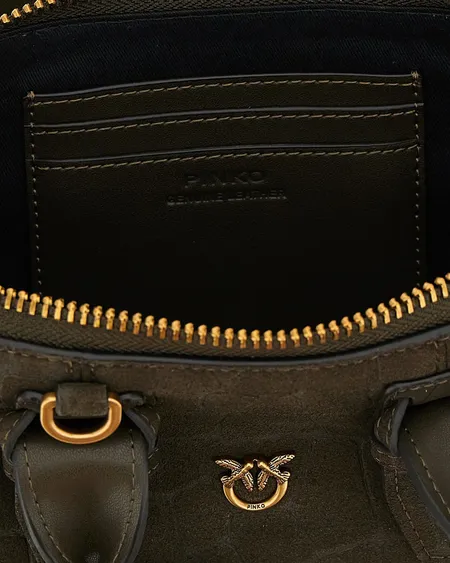 Bolso de mano para mujer, también apto como bandolera, de la casa italiana Pinko. Se cierra con cremallera y cuenta con un único compartimento principal para múltiples usos.