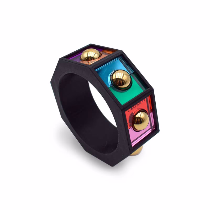 Colores: Verde esmeralda, morado, melocotón, rosa, rojo, celeste, dorado y negro