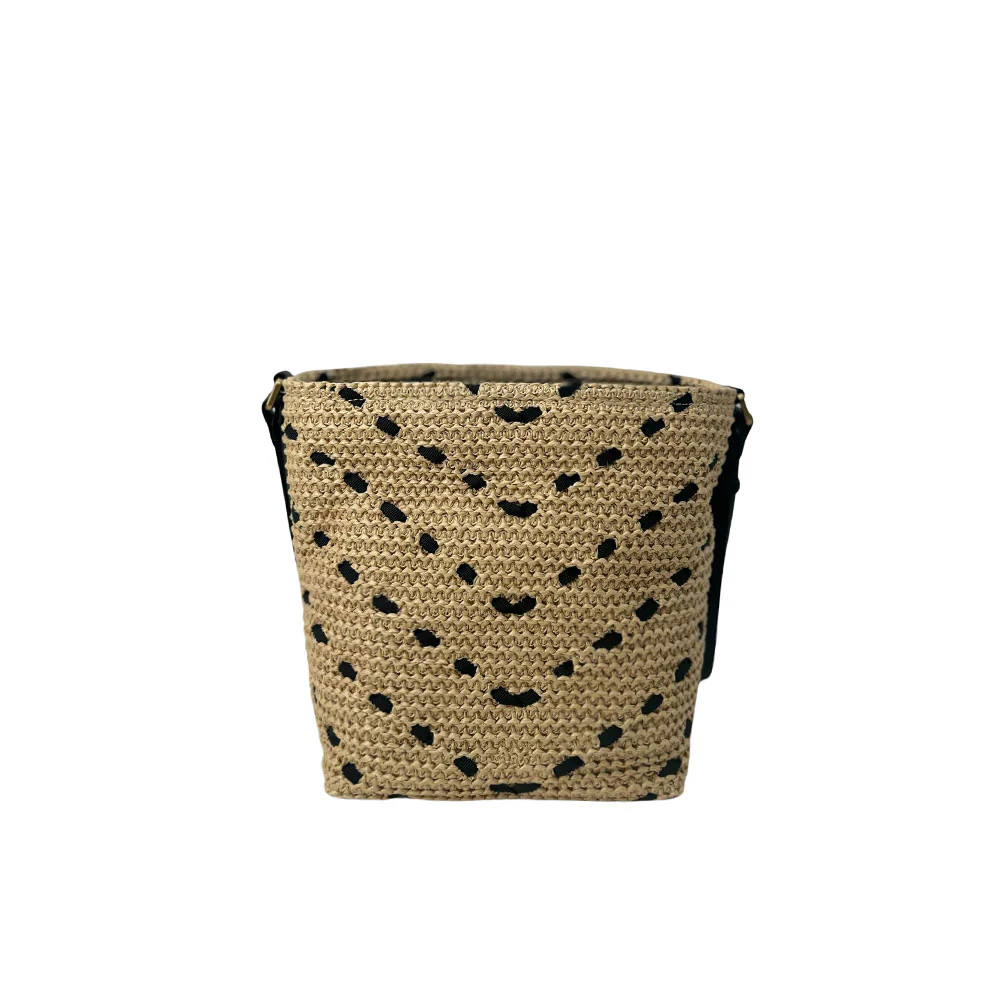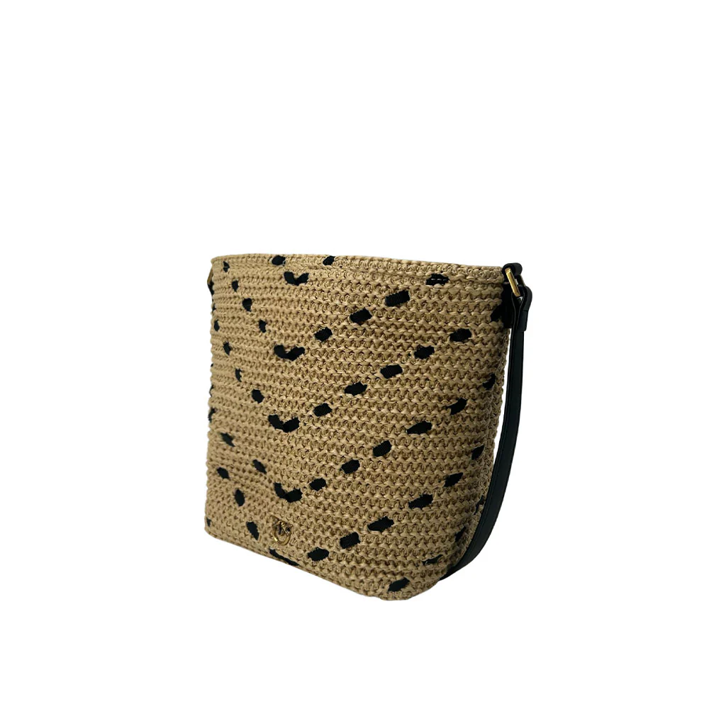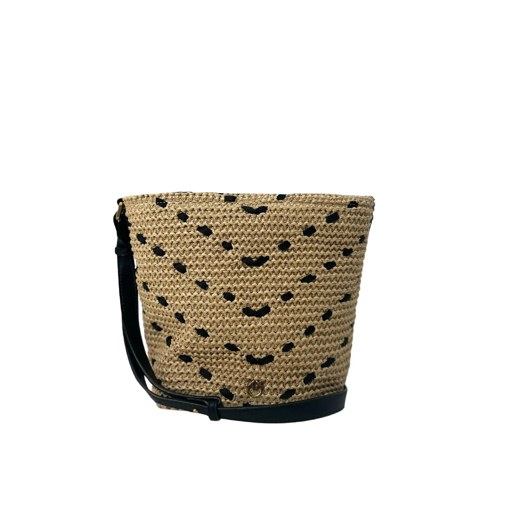 Bucket Mini Chevron Rafia Bag Black Pinko