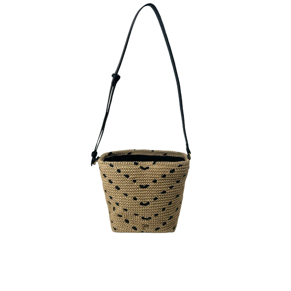 Conóceme mejor: Bucket Mini Chevron Rafia Bag Black Pinko