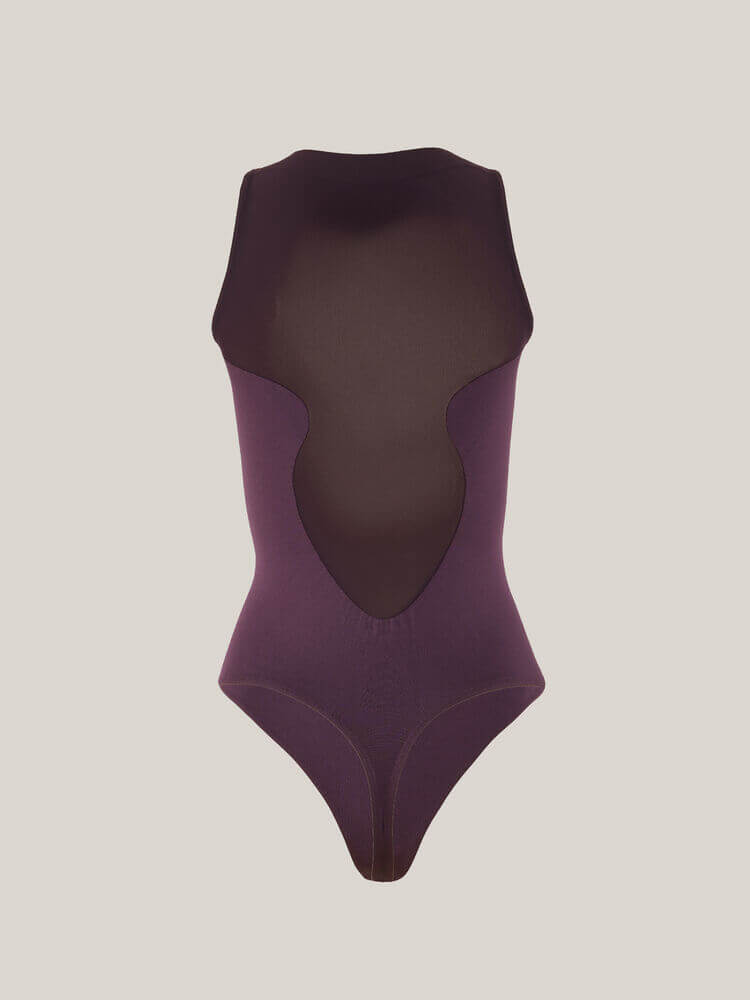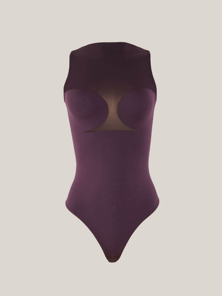 Atrevido efecto corsé / Escote transparente / Técnicas de punto opaco-transparentes / Efecto mate/brillante / Punto circular / Corte ajustado / Sin costuras / Escote recto de punto / Sin mangas / Refuerzo de algodón / Cierre automático / Teñido sostenible