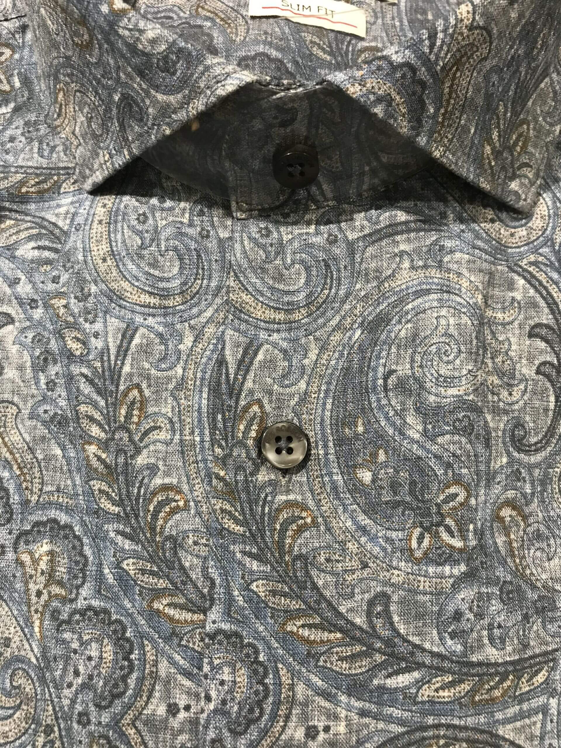 Etiquetas algodón, camisa, celeste, estampado, R6, roy robson