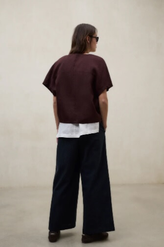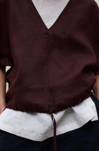 La Camisa Dora está fabricada con un tejido principal de 80% Lino. Fit relajado. Escote en V y bajo ajustable.