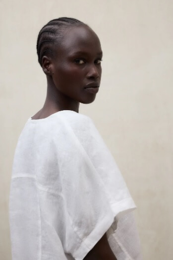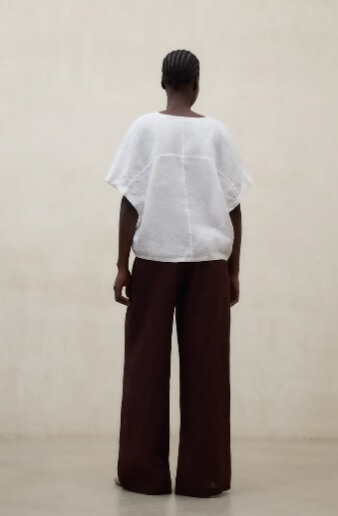 La Camisa Dora está fabricada con un tejido principal de 80% Lino. Fit relajado. Escote en V y bajo ajustable.