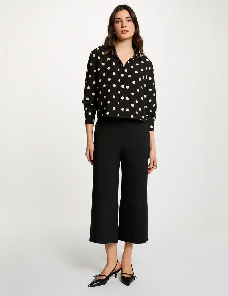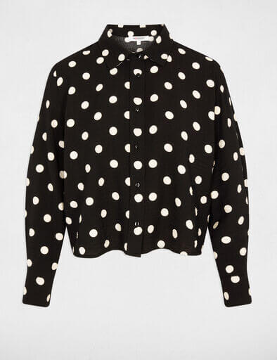 - Esta camisa recta y cropped encarna un estilo casual chic con su estampado de lunares, símbolo de feminidad atemporal. El cuello con solapa estructura delicadamente la parte superior del cuerpo para una apariencia elegante y segura. Su corte moderno se adapta perfectamente a las tendencias actuales, convirtiéndola en una prenda imprescindible para el día a día.