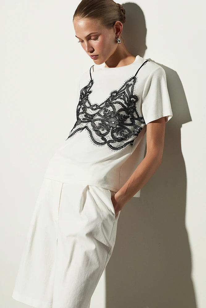 Conóceme mejor: Camiseta Apliques De Encaje Bsb