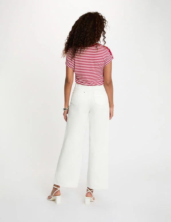- Esta camiseta de rayas encarna un estilo casual chic con un aire moderno y de tendencia. Su corte recto se adapta elegantemente a todas las morfologías, ofreciendo una silueta armoniosa. Los botones aportan un toque sofisticado que realza sutilmente esta pieza imprescindible del armario femenino.