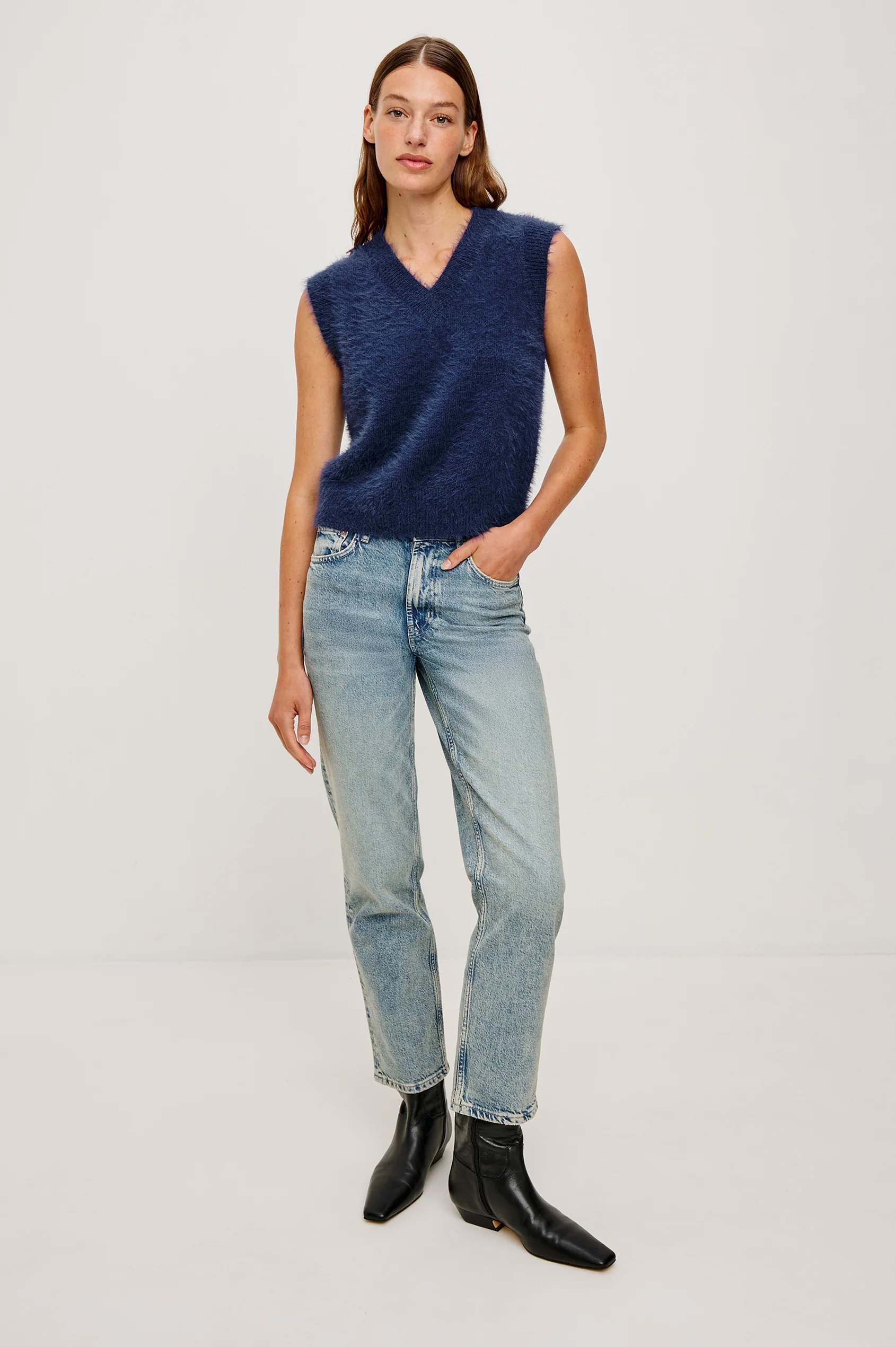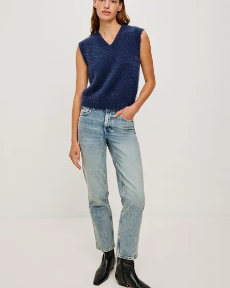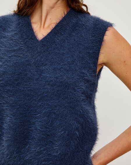 El Talli es un chaleco de cuello en V confeccionado en una suave y afelpada mezcla de lana. El ribete en el cuello, las sisas y el bajo garantiza un ajuste perfecto.