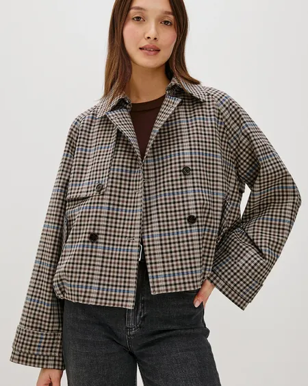 Etiquetas Chaqueta, jett, mocha check, rails, W7