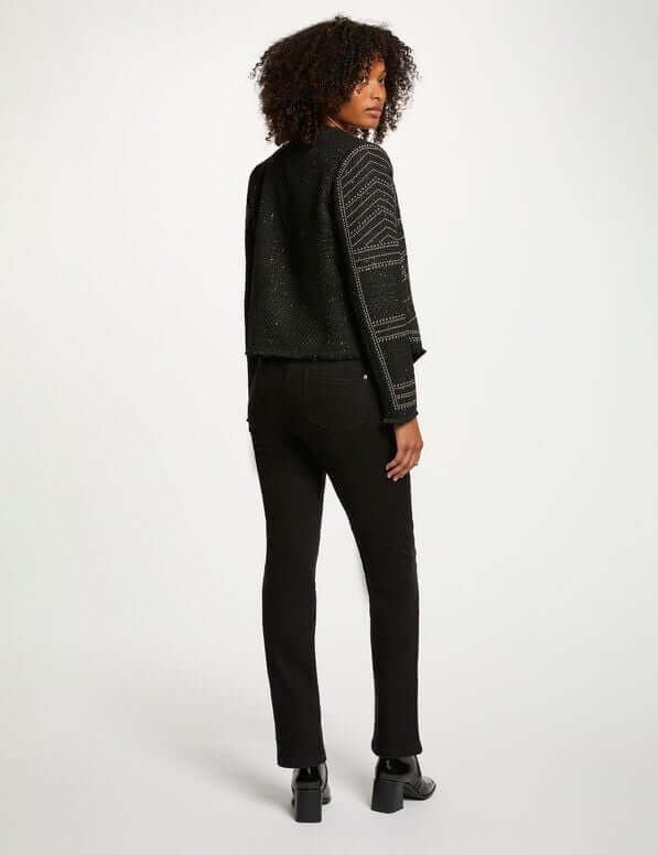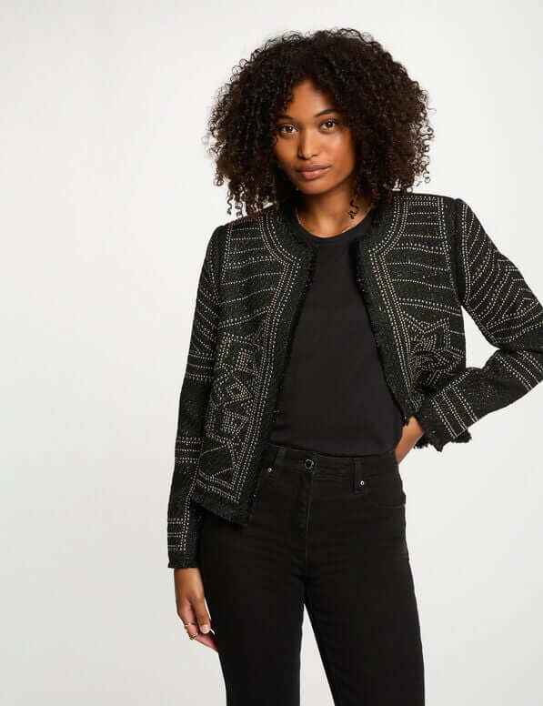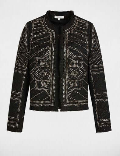 - Esta chaqueta recta encarna una elegancia atemporal con sus detalles tachonados que aportan un toque sofisticado y moderno. Su corte favorece la silueta mientras estructura sus conjuntos con elegancia. Un imprescindible para añadir carácter a su guardarropa sin renunciar al estilo.