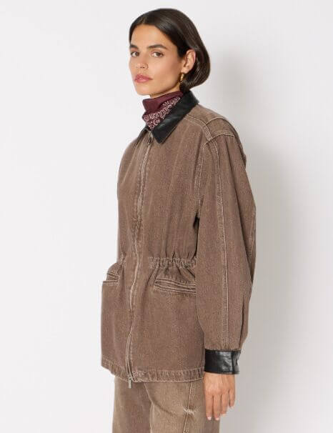 La chaqueta VIVIENNE reinventa el denim con audacia. Su corte amplio contrasta con un cinturón que estructura suavemente la silueta. Los ribetes negros de piel sintética en el cuello y los puños añaden un toque contemporáneo y decidido a esta icónica prenda. Versátil y moderna, VIVIENNE puede llevarse como una prenda única, sobre un vestido fluido o con un look denim total.
