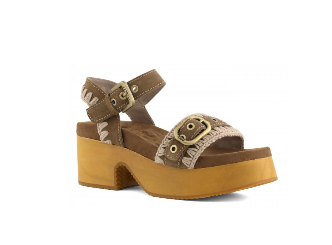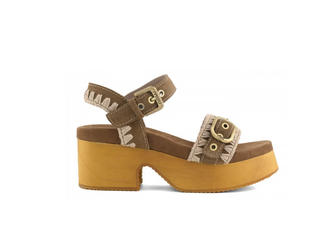 El zueco de madera con tacón alto y hebilla es un modelo encantador para los días de verano. Confeccionado en ante de primera calidad con el característico detalle de punto de ganchillo, correa en la parte delantera y tira en tobillo. cuenta con una suela de madera y goma que proporciona buen soporte y una plantilla acolchada para mayor comodidad. Altura del zueco 6cm.