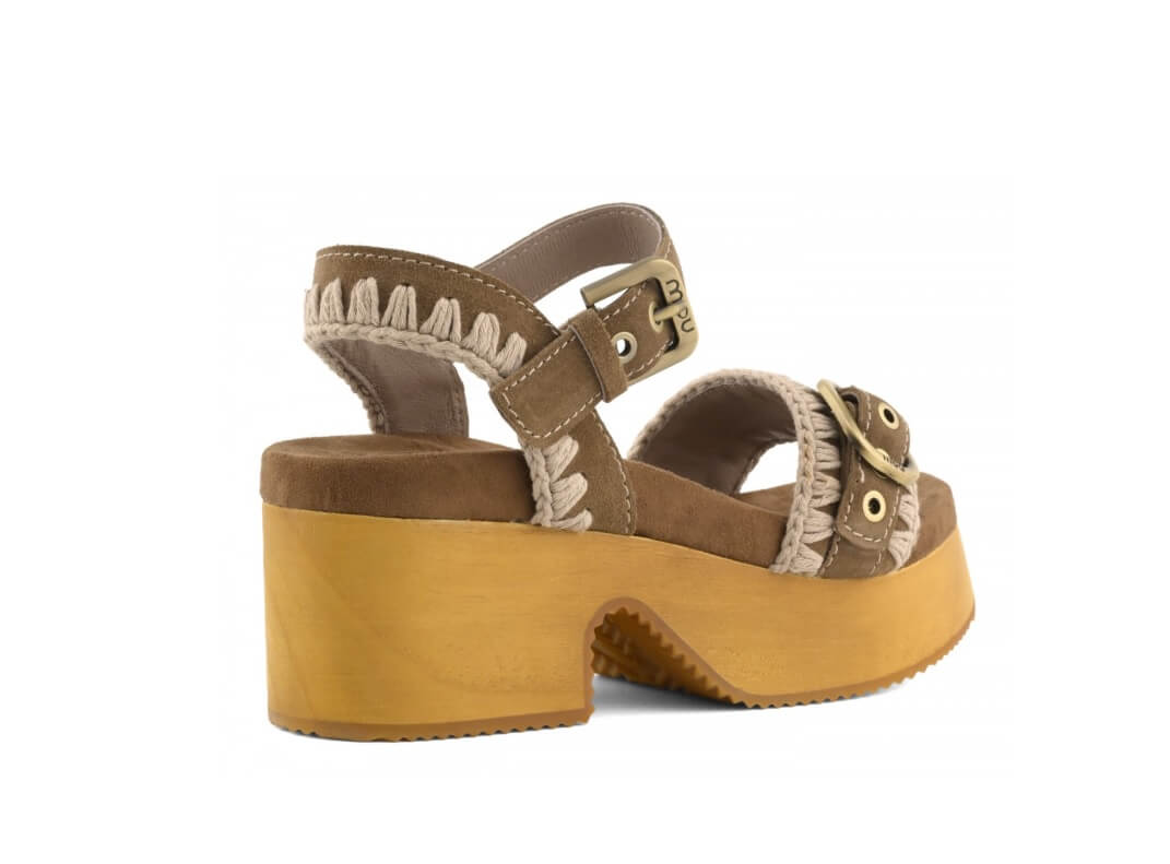 High Heel Wood Clog Buckle Nut Mou