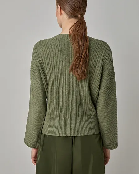 Jersey canalé, mangas largas, escote redondo, detalles lurex, diseño recto.