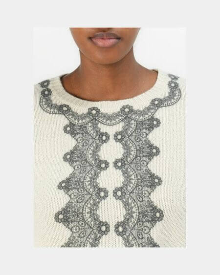 Jersey en color nieve con estampación efecto encaje en color negro.