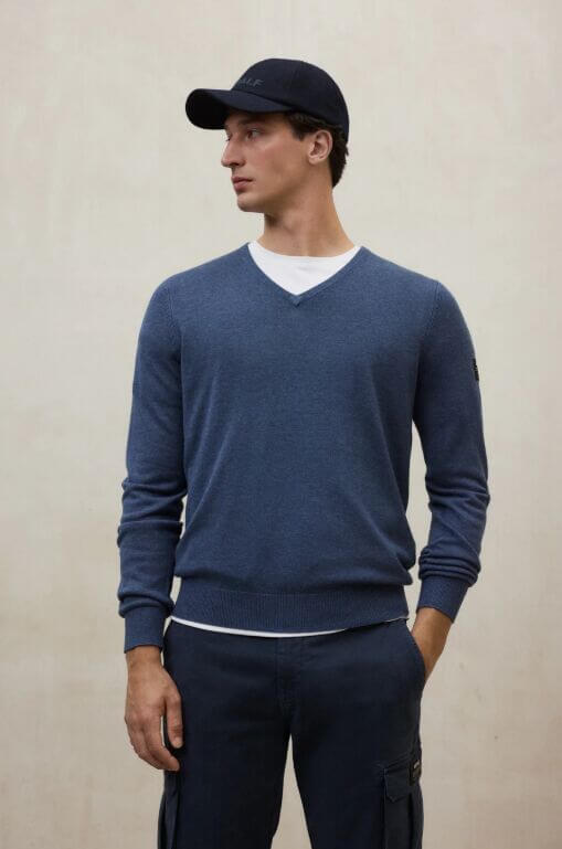 - Cuello en V de punto