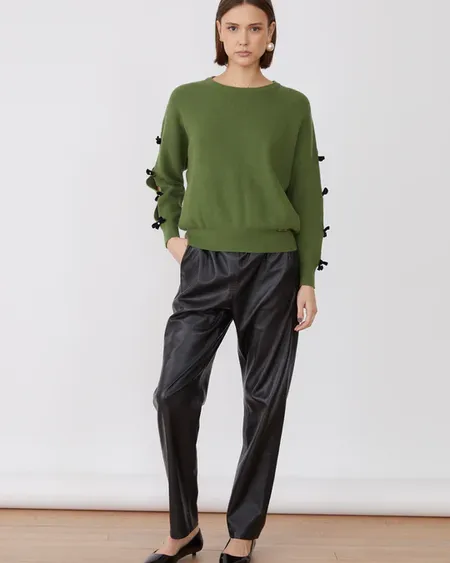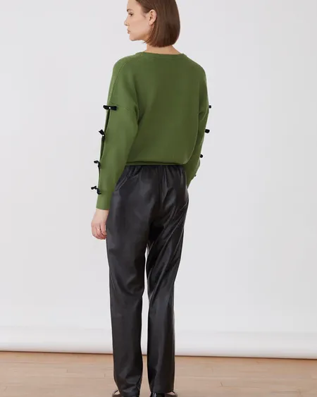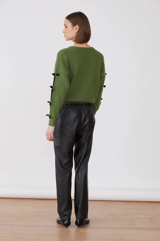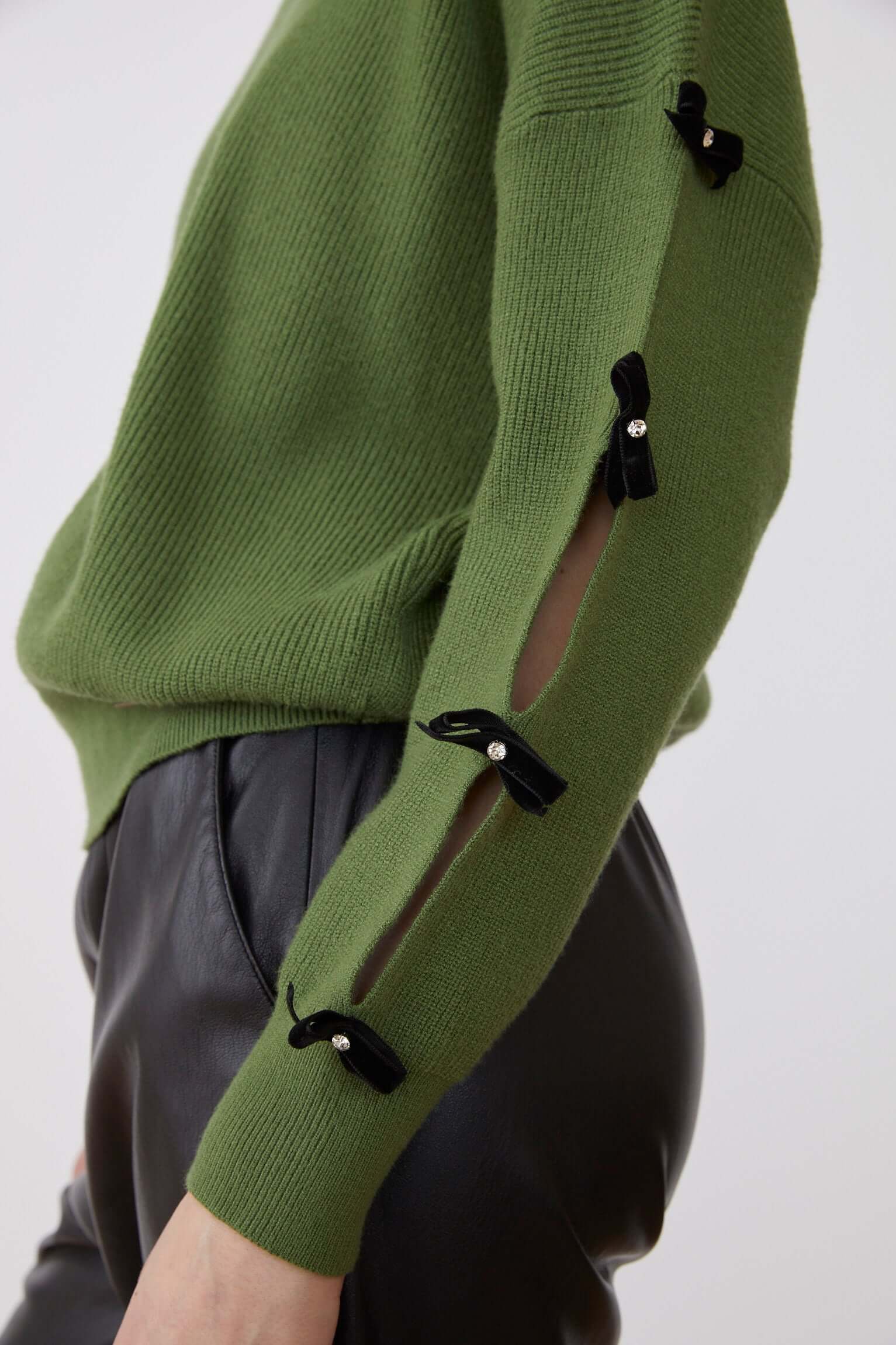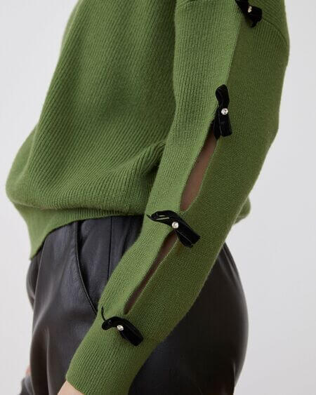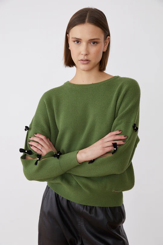 El jersey Coronel en verde presenta elegantes aberturas laterales en las mangas, adornadas con lazos en contraste que aportan un toque refinado. Este detalle mejora tanto la comodidad como el estilo, lo que lo convierte en una opción sofisticada para una apariencia pulida pero distintiva.