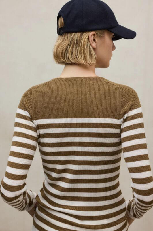 El jersey Lily está compuesto por un 50% de Lana reciclada y un 50% de TENCEL™ Lyocell. Usar lana reciclada frente al uso de lana virgen contribuye a reducir residuos, ahorrar recursos como el agua y el suelo, y a disminuir las emisiones y posibles vertidos al agua, alineándose con los principios de la economía circular. Las fibras TENCEL™ Lyocell provienen de pulpa de madera de bosques certificados y con procesos de circuito cerrado siguiendo los estándares ambientales más altos.