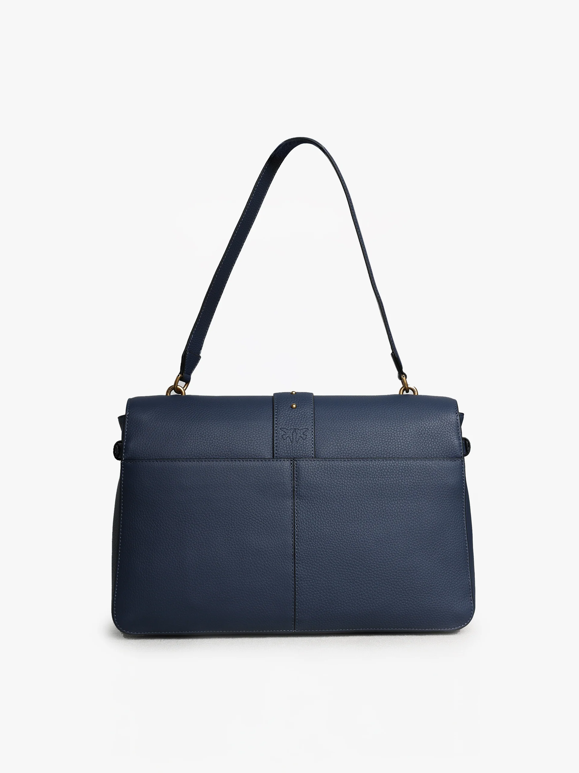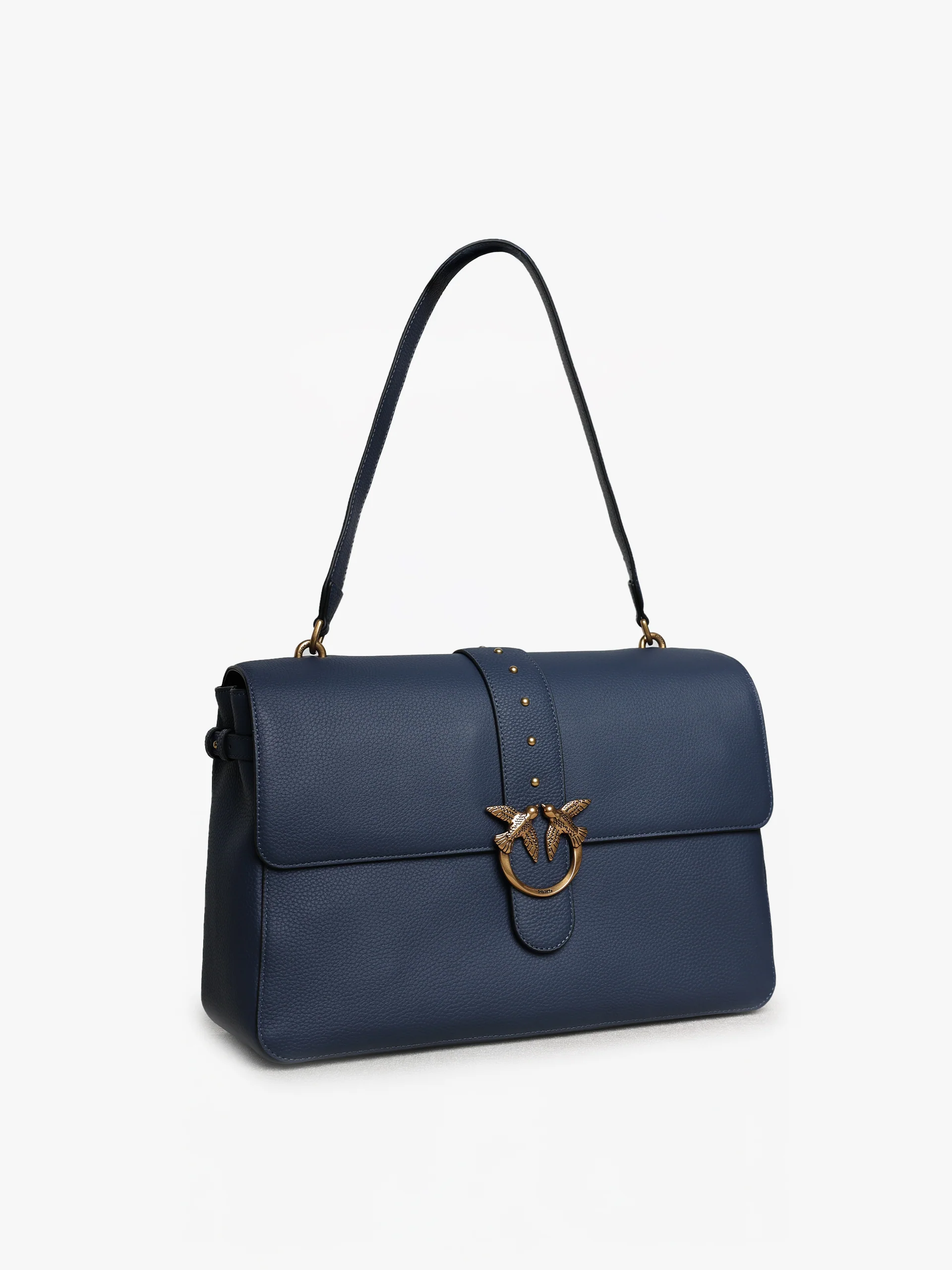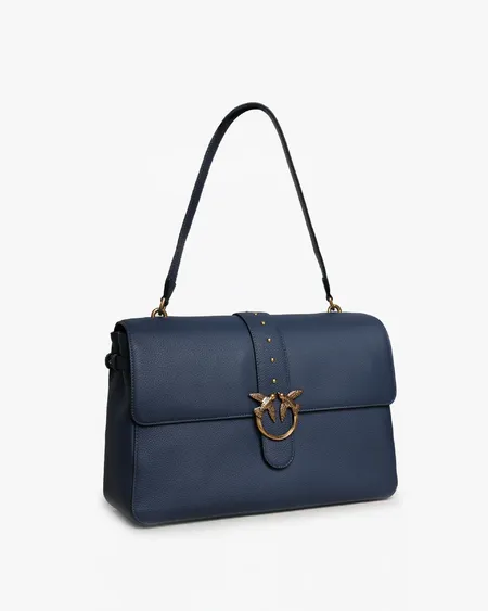 Bolso de mujer de suave piel martillada con forma desestructurada. Placa con el logo de Love Birds bañada en oro.