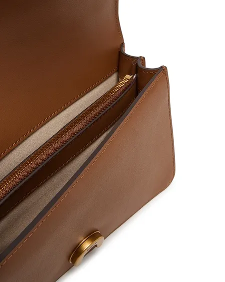 • La bandolera combina la clásica cadena redonda con una práctica correa de piel ajustable.