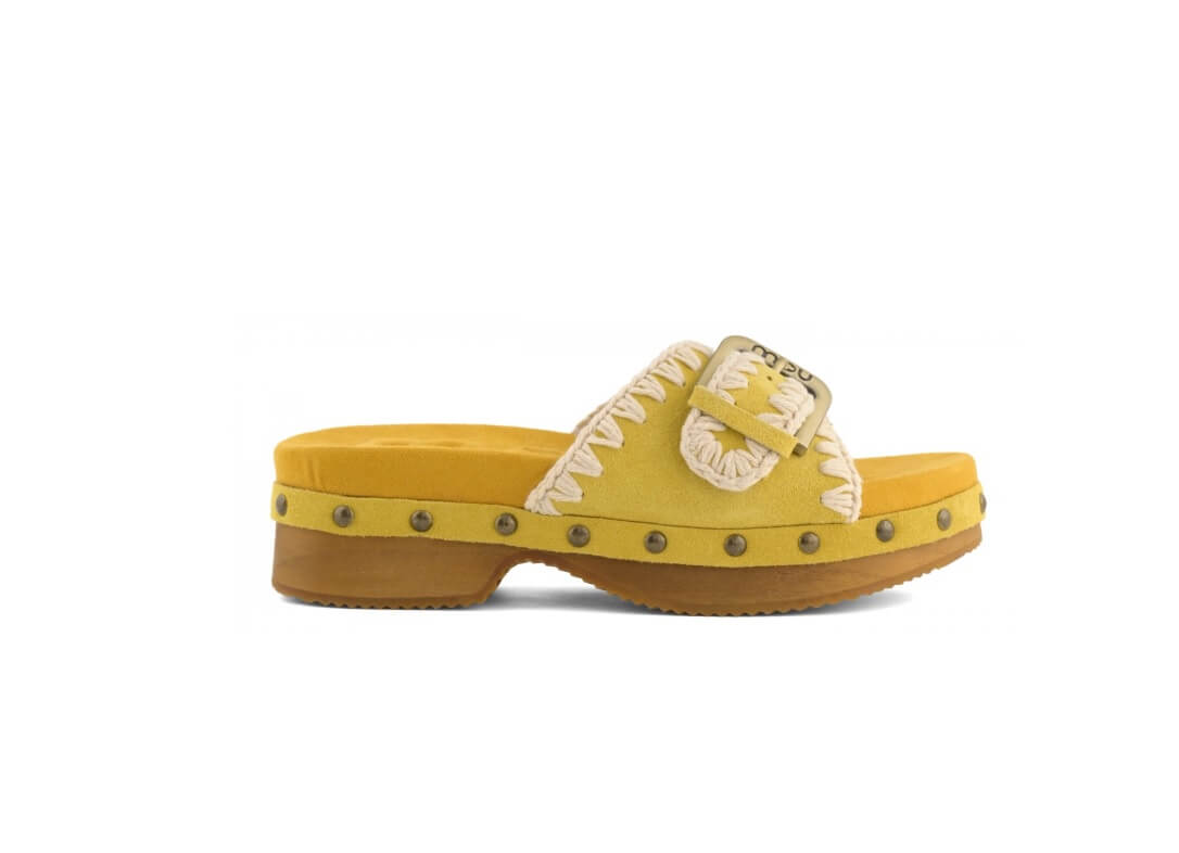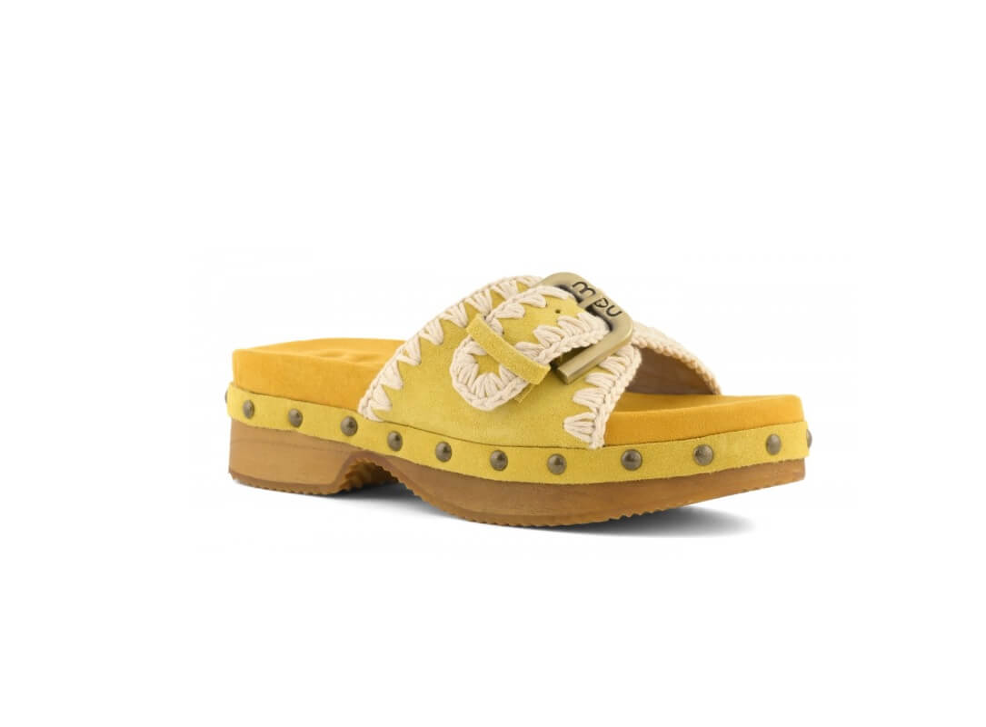 Low Heel Wood Clog With Buckle Mou