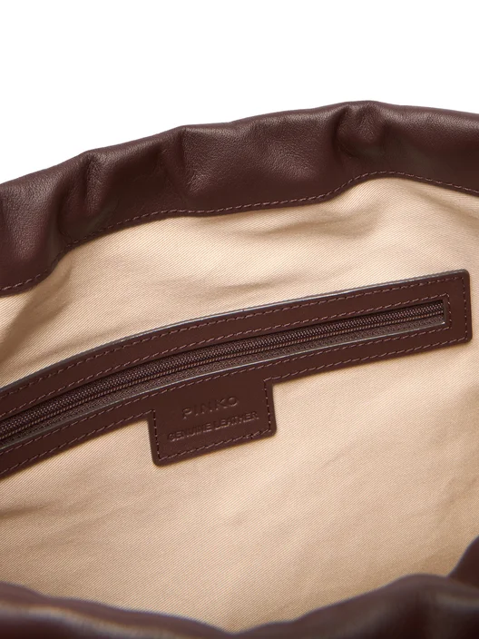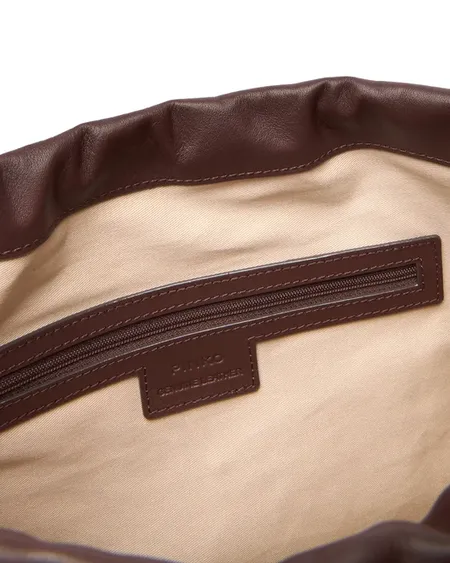 Bolso de mano grande, alargado y desestructurado con cierre de cordón, confeccionado en piel suave. Cuenta con dos correas de hombro ajustables de piel, una de ellas con un diseño tejido distintivo, ideal para llevar al hombro o en la mano, según tus necesidades. El interior está forrado en dril de algodón e incluye un bolsillo con cremallera. El toque final lo pone una placa con el logo de Love Birds, que representa el estilo inimitable de la marca.