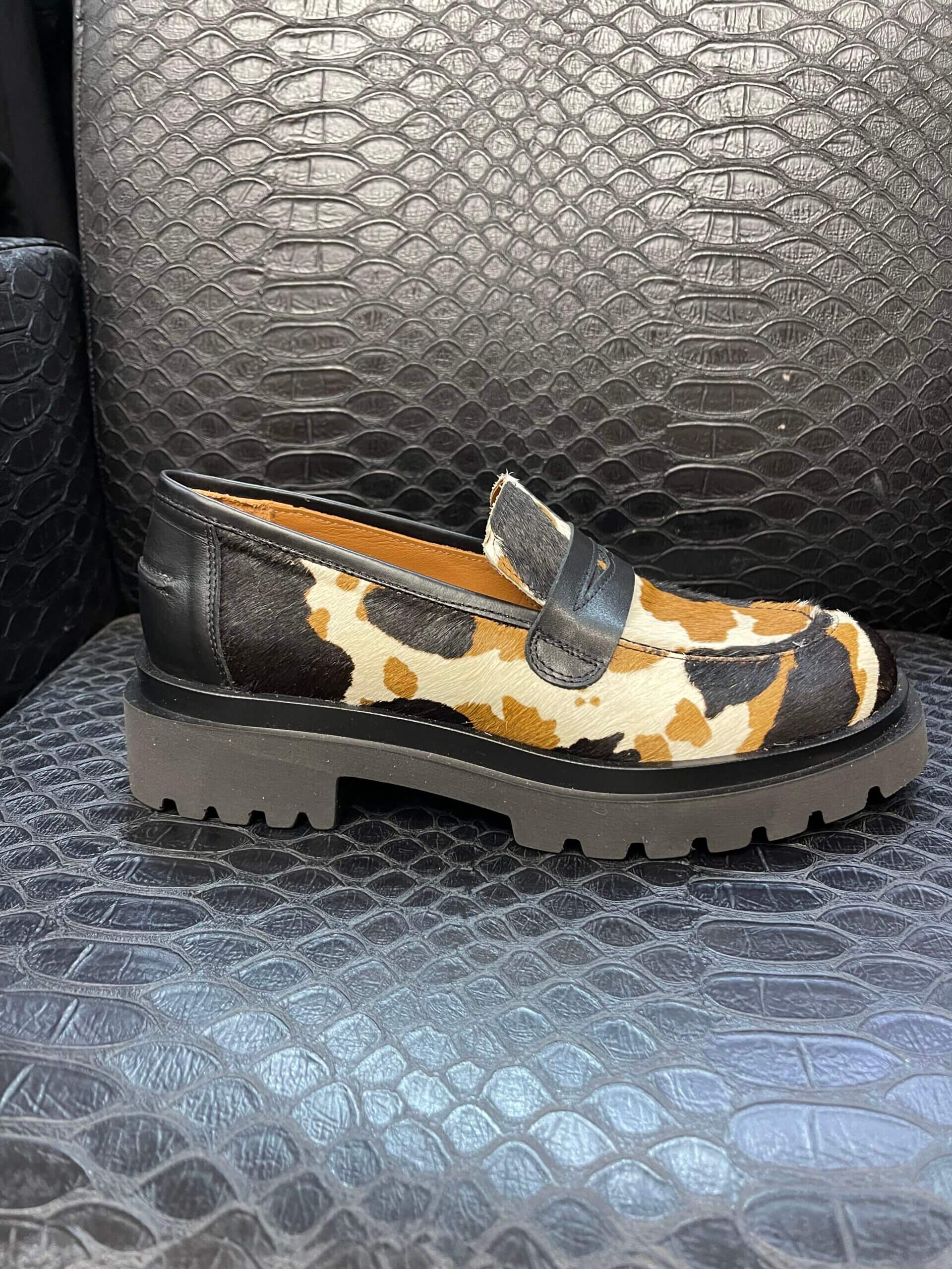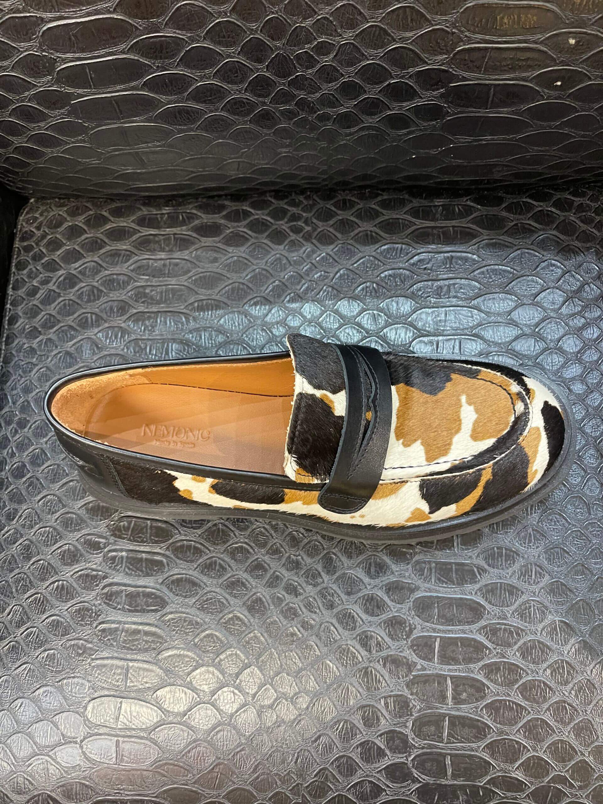Etiquetas animal print, mocasín, nemoric, piel, poreo, suela track, vaca, W7