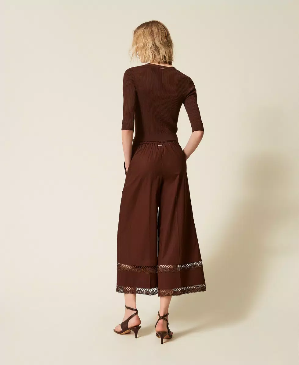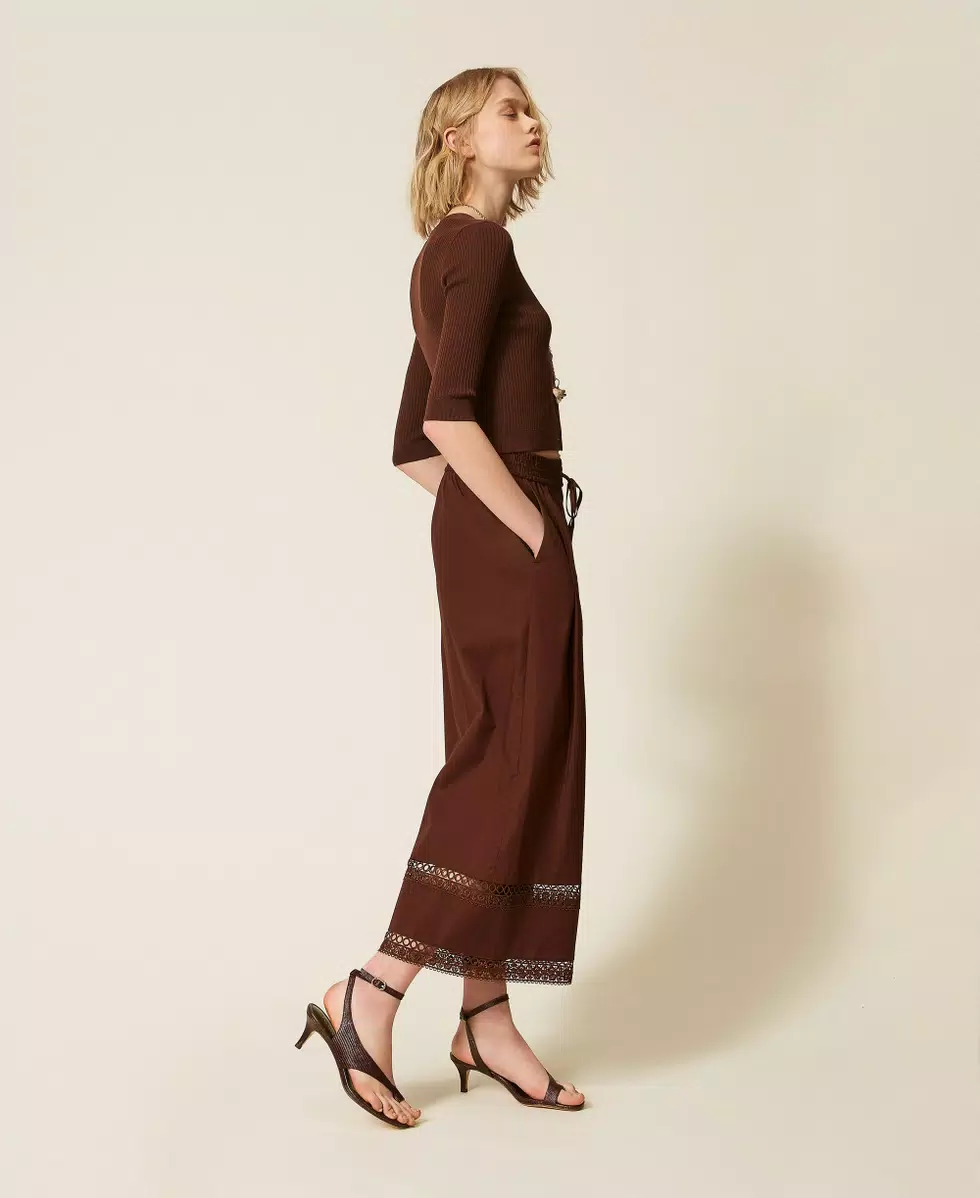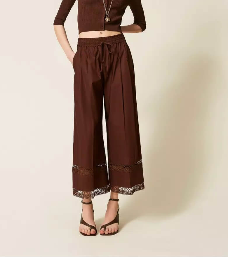 Etiquetas ancho, bordado, coffee, pantalón, popelina, R7, Twinset