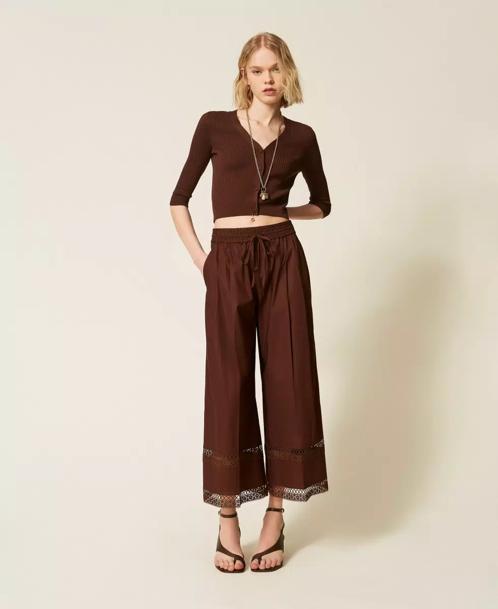 Pantalón Ancho Popelina Bordado Twinset