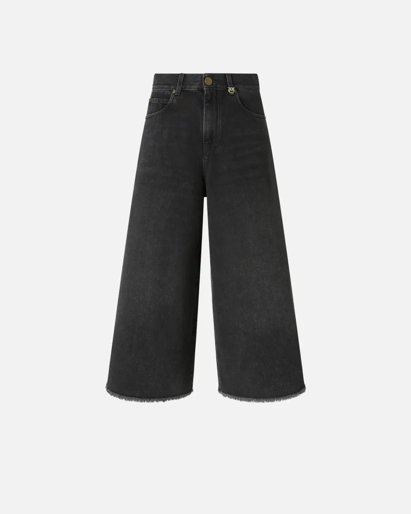 Bermudas largas con cinco bolsillos de inspiración años 70 con pernera ancha y dobladillo deshilachado, confeccionadas en denim negro de algodón de tacto fluido y tratadas con lavado a la piedra y lijado para lograr un efecto usado. Para personalizar el diseño al más puro estilo PINKO encontramos la trabilla extraíble con logotipo Love Birds. Ponte estos vaqueros cortos con un par de botas altas para lucir un look impactante incluso en invierno. Talle medio con trabillas para el cinturón y cierre con cremallera y botón.