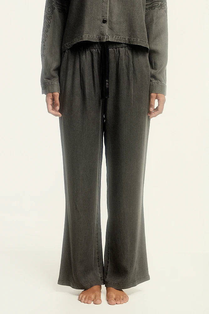 Pantalón, cintura elástica, cierre con lazo, bolsillos, diseño recto