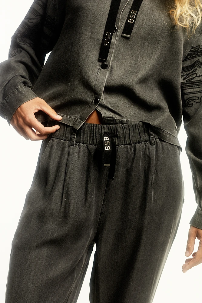 Etiquetas Bsb, cintura elásica, gris, pantalón, W7