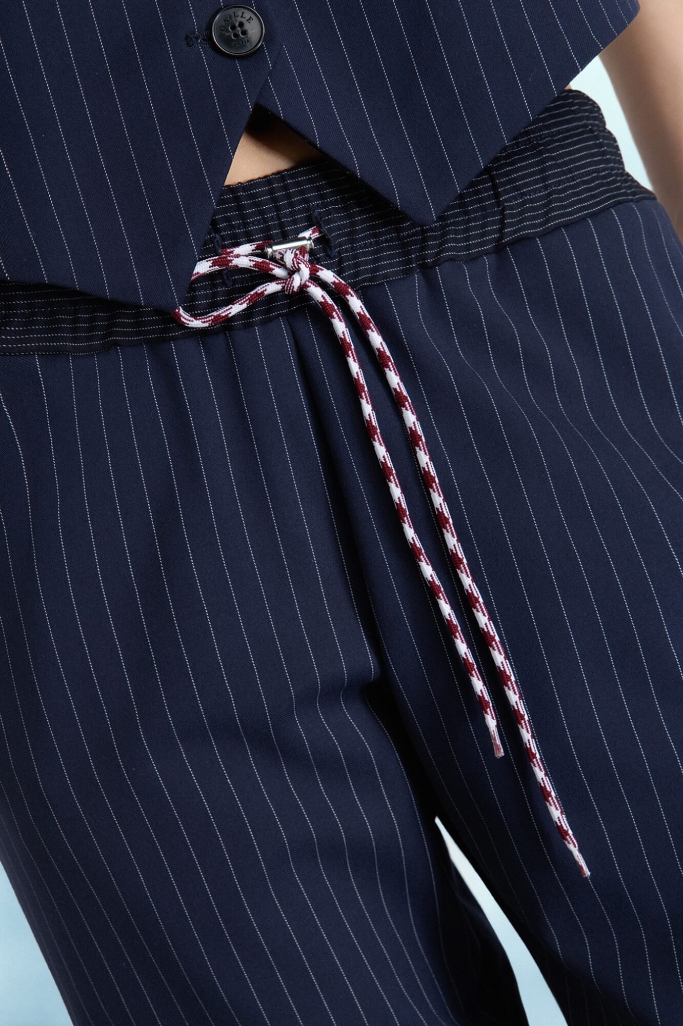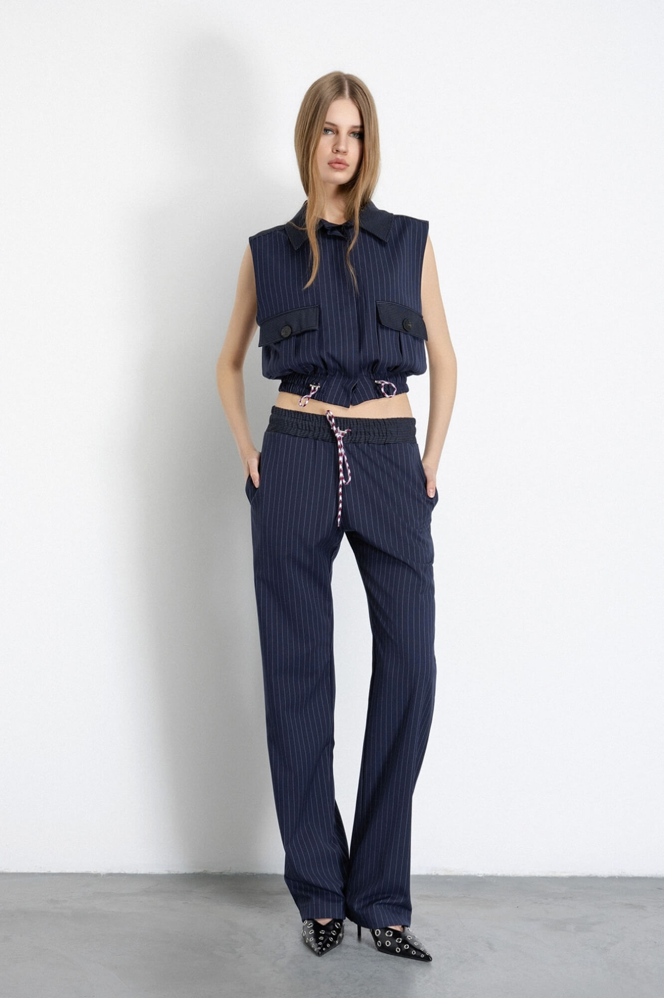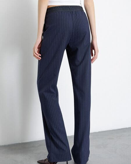 Pantalones rectos suaves con cintura con cordón