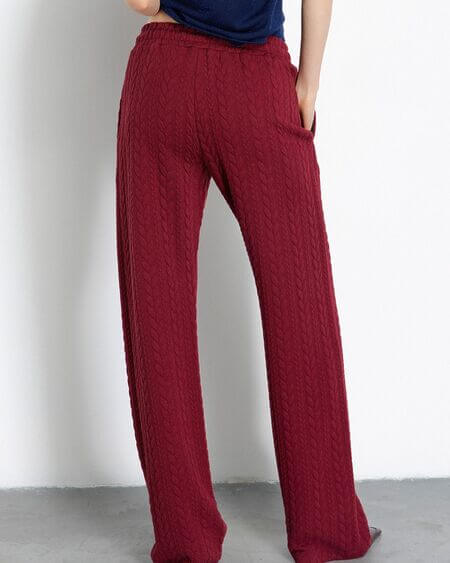 Pantalones rectos suaves con cintura con cordón