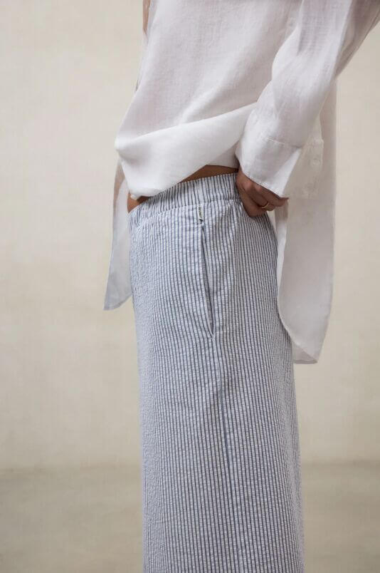Los Pantalones Moss están fabricados con un tejido principal de 70% Algodón orgánico. Fit relajado. Cintura elástica y bolsillos laterales.