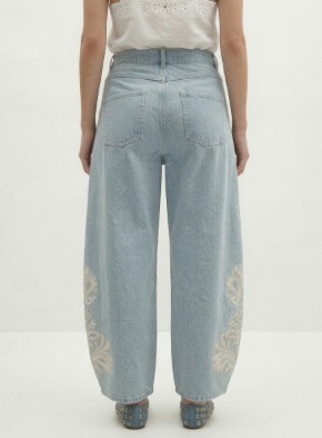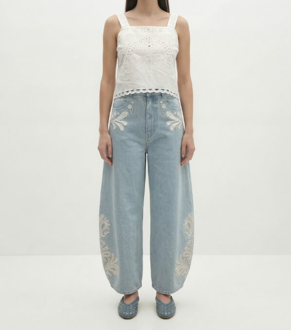 Estos jeans globo de cintura alta combinan comodidad y estilo moderno gracias a su corte voluminoso y delicados bordados. Combínalos con una blusa fluida o un top ajustado para un look casual chic y femenino.