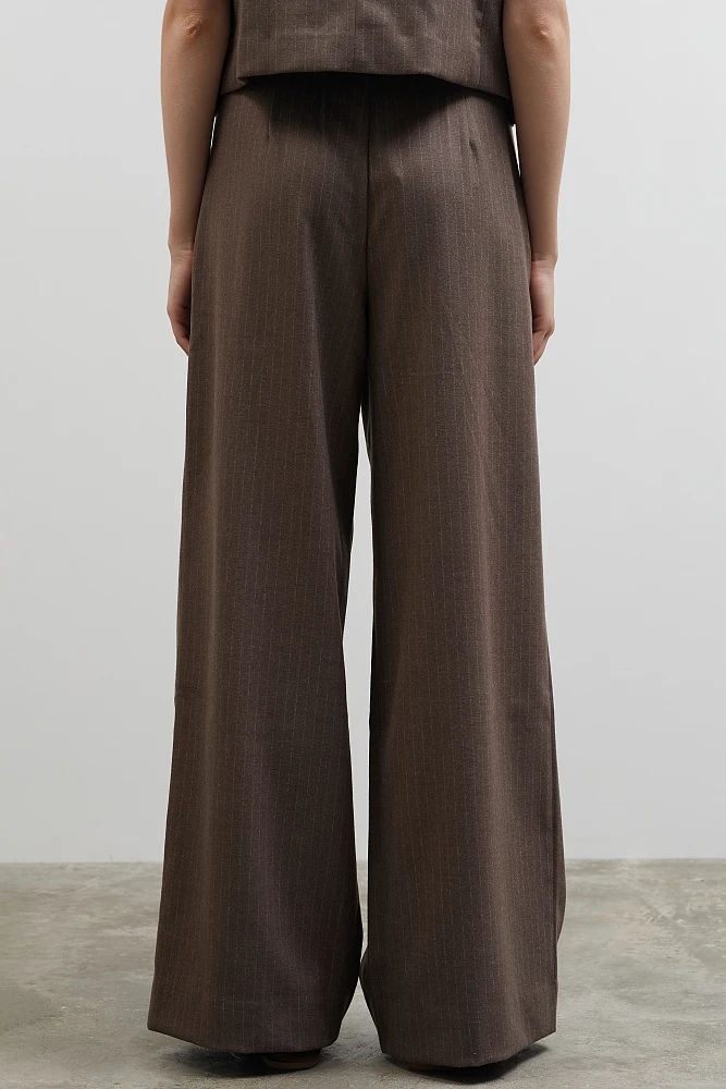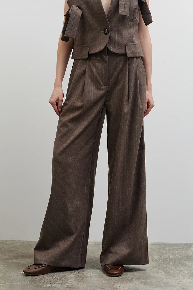 Pantalón de rayas con pliegues, con cierre de gancho y cremallera, corte regular