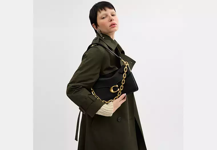 Nuestro bolso de hombro estructurado con cadena Tabby, una revisión moderna de un diseño de Coach de los años 70, está confeccionado en suave piel flor drapeada con un lustre sutil. Acabado con nuestros herrajes de firma para darle un toque icónico, este estilo compacto tiene espacio para todos los objetos básicos, bolsillos organizadores multifunción interiores y un práctico bolsillo con cremallera exterior para un fácil acceso a los objetos. Su diseño versátil está acabado con tres correas desmontables para llevar en la mano, llevar cómodamente al hombro con la elegante correa de cadena cosida y la correa corta de piel o como bolso cruzado con una correa larga de piel para dejar las manos libres.