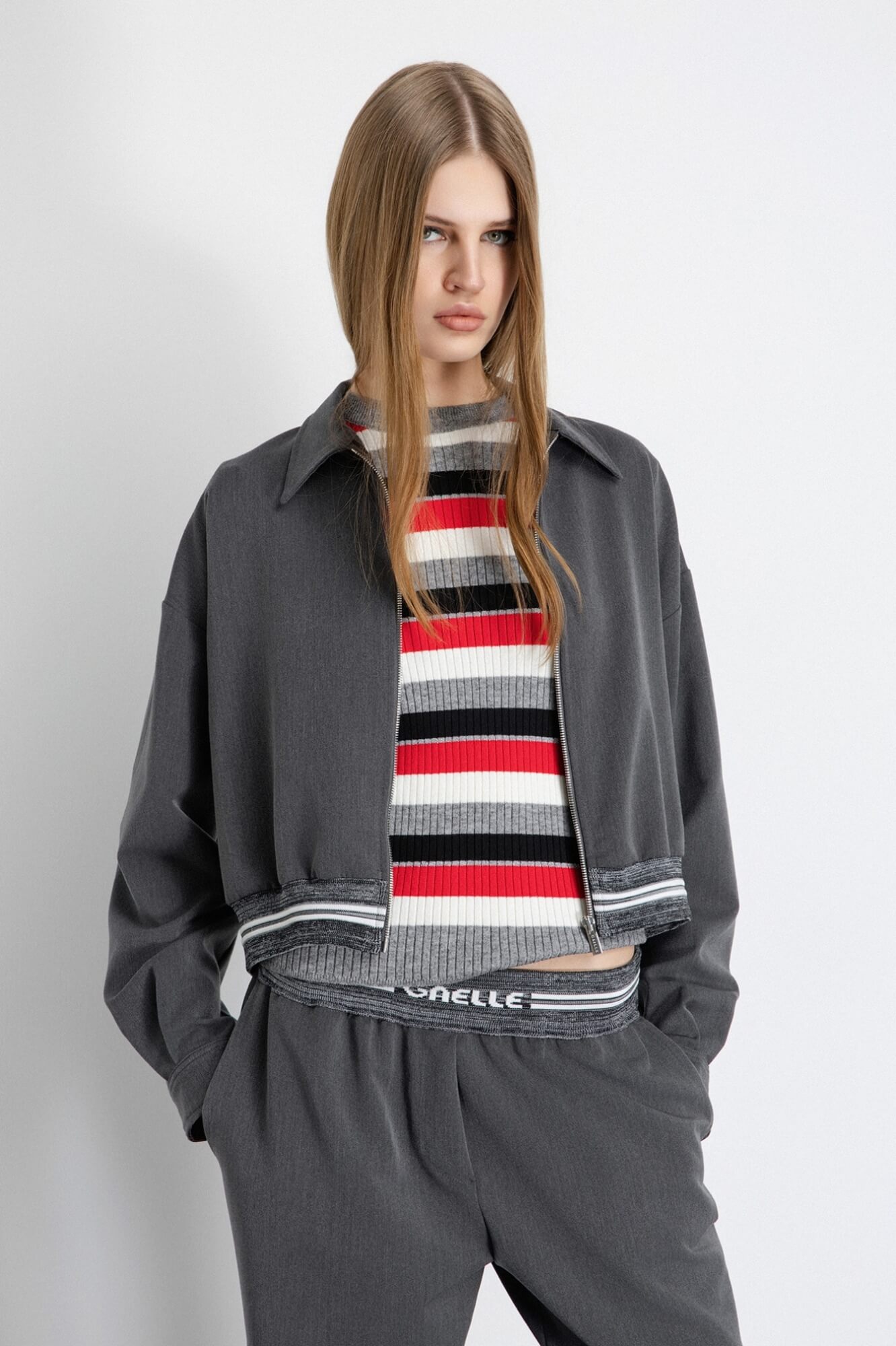 Etiquetas crop, gaëlle, gris, logo, sudadera, W7