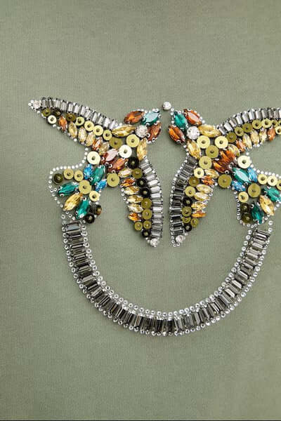 Sudadera para mujer confeccionada en felpa de algodón. La parte delantera luce el logotipo de Love Birds bordado, adornado con lentejuelas multicolores y apliques de pedrería. 100 % algodón.