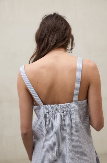 La Camisa Aria está fabricada con un tejido principal de 70% Algodón orgánico. Fit regular. Escote cuadrado. Banda elástica en la parte trasera y aberturas laterales.