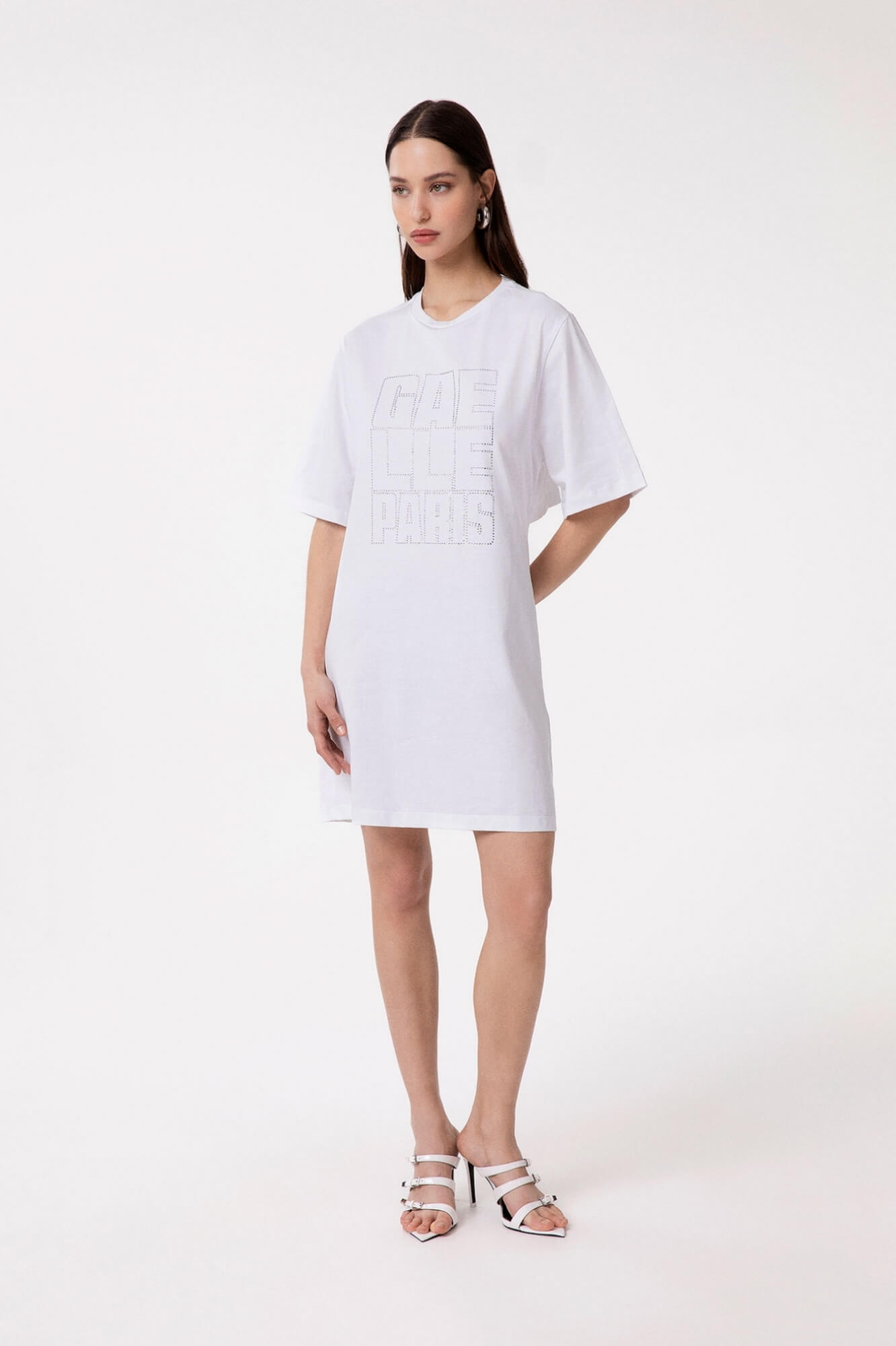 Etiquetas blanco, corto, espalda abierta, gaële, pedrería, vestido