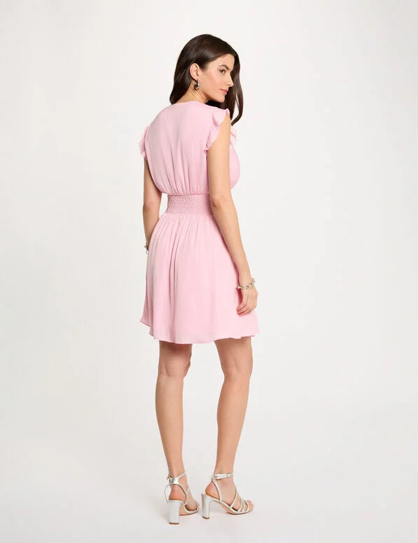 Etiquetas corto, cuello v, mogan de toi, R7, rosa, rwany, vestido